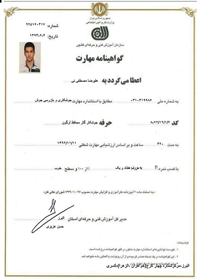 نمونه گواهينامه هاي جوشكاري